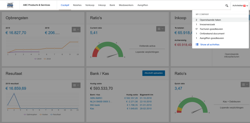 Een digitale brievenbus helpt je om alle inkoop en verkoopfacturen te verzamelen op een plek, maar dan wel met een overzichtelijk systeem. Deze kun je bijvoorbeeld binnen laten komen in een app als Clerq HR én zorg je ervoor dat je alle facturen op tijd kunt betalen. Zorg er dan ook voor dat je de zakelijke bankrekening gekoppeld hebt aan de zakelijke rekening. Ook kun je webwinkelfacturen koppelen aan E-online. Hierdoor bespaart dit je een hoop werk, omdat je dan niet alles hoeft in te boeken.
